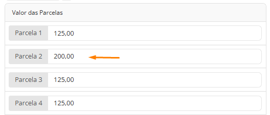 ⚠️ Atenção: Caso as parcelas tenham valores diferentes, é possível editá-las na seção Valor das Parcelas.