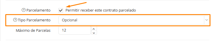 3. Na área "Parcelamento", marque a opção "Permitir receber este contrato parcelado".