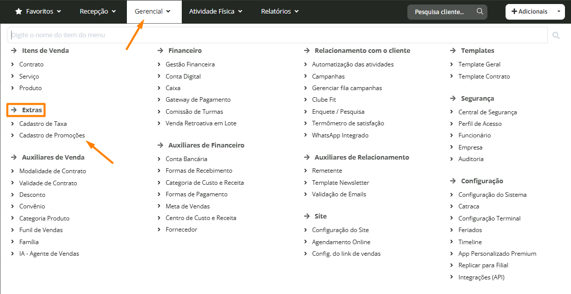 1. Acesse o menu Gerencial > Extras > Cadastro de Promoções:
