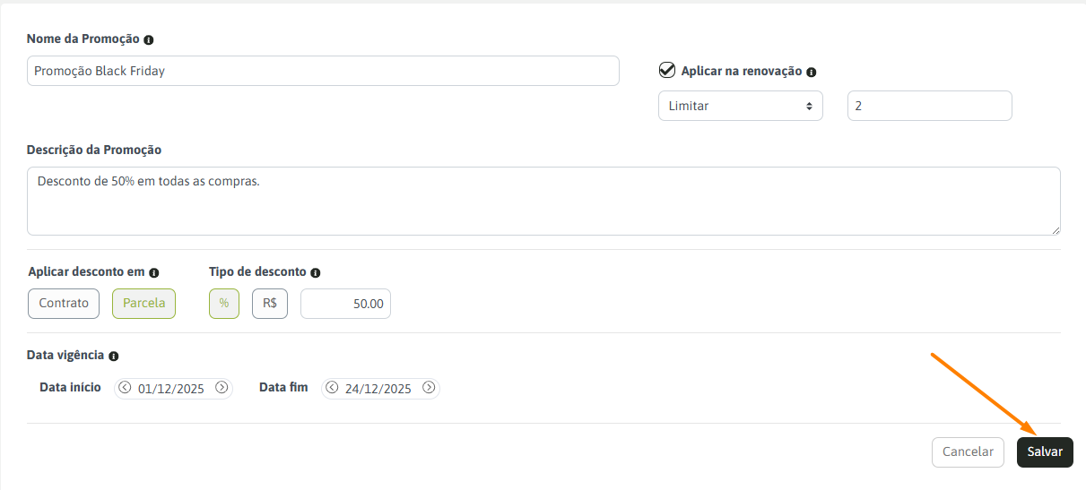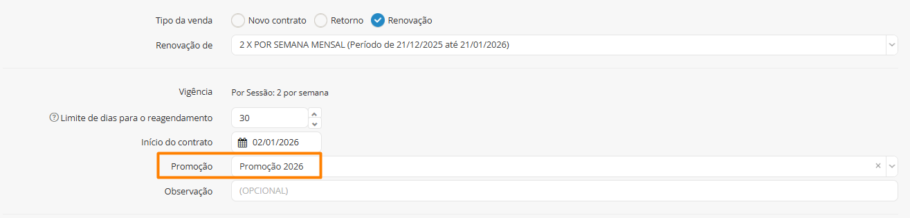 4. Em "Promoção", selecione a promoção ativa para o contrato: