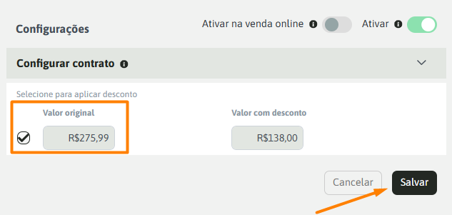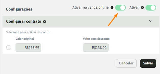 1. Na aba de ativação da promoção, ative o botão "Ativar na venda online":