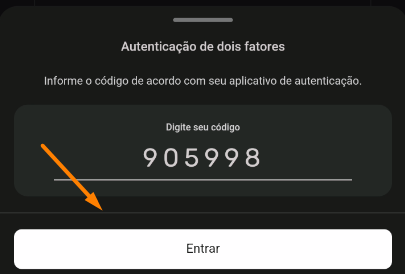 4. Caso você seja um administrador, será solicitado o código referente a autenticação de 2 fatores. Digite o código gerado no app autenticador, e clique em "Entrar" novamente: