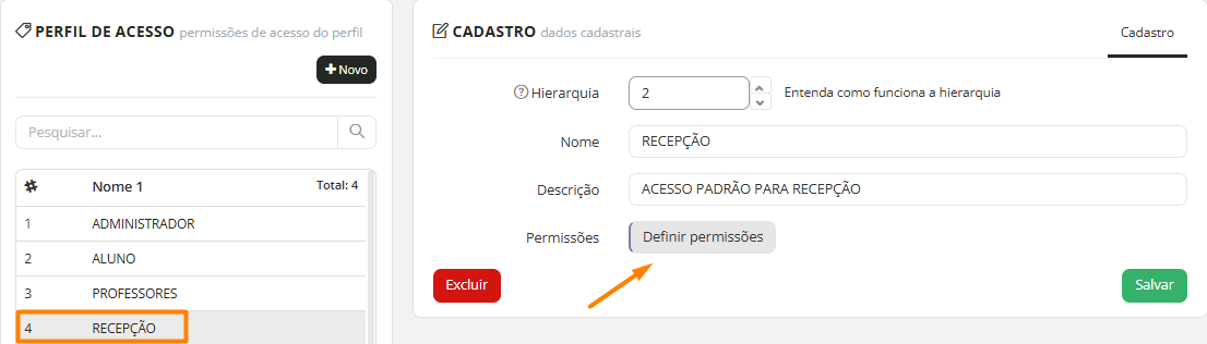 ⚠️ Caso seja criado um novo perfil de acesso, é necessário vinculá-lo ao cadastro dos funcionários que utilizarão esse perfil: Como cadastrar, excluir, cancelar e reativar um funcionário?