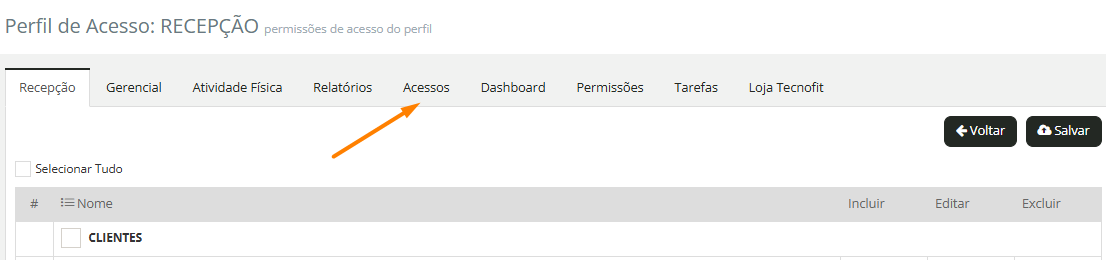 3. Clique na aba "Acessos":
