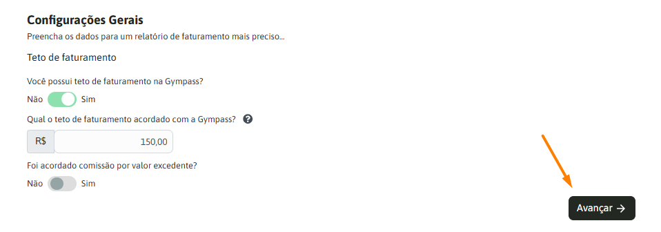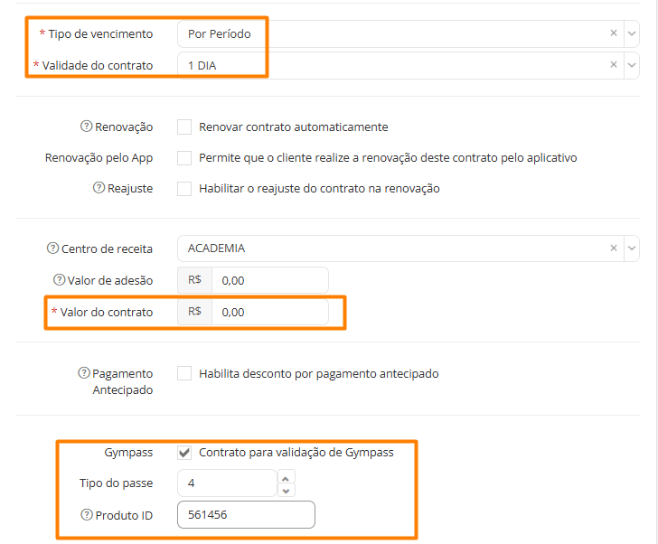 - A opção "Contrato para validação de Gympass" deve ser ativada;