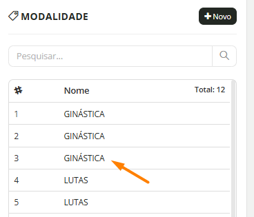 2 - Clique na modalidade desejada, ou clique em "+Novo" para criar uma nova: