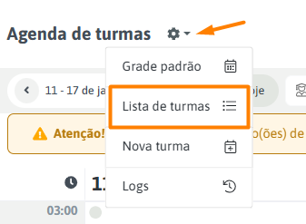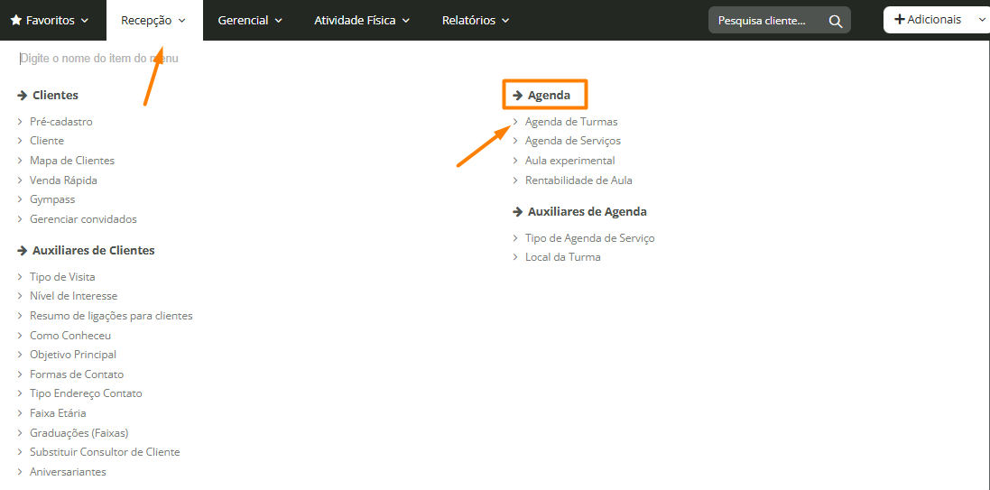 1 - Acesse Recepção > Agenda > Agenda de Turmas: