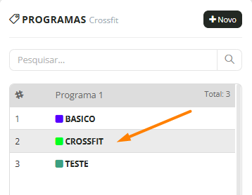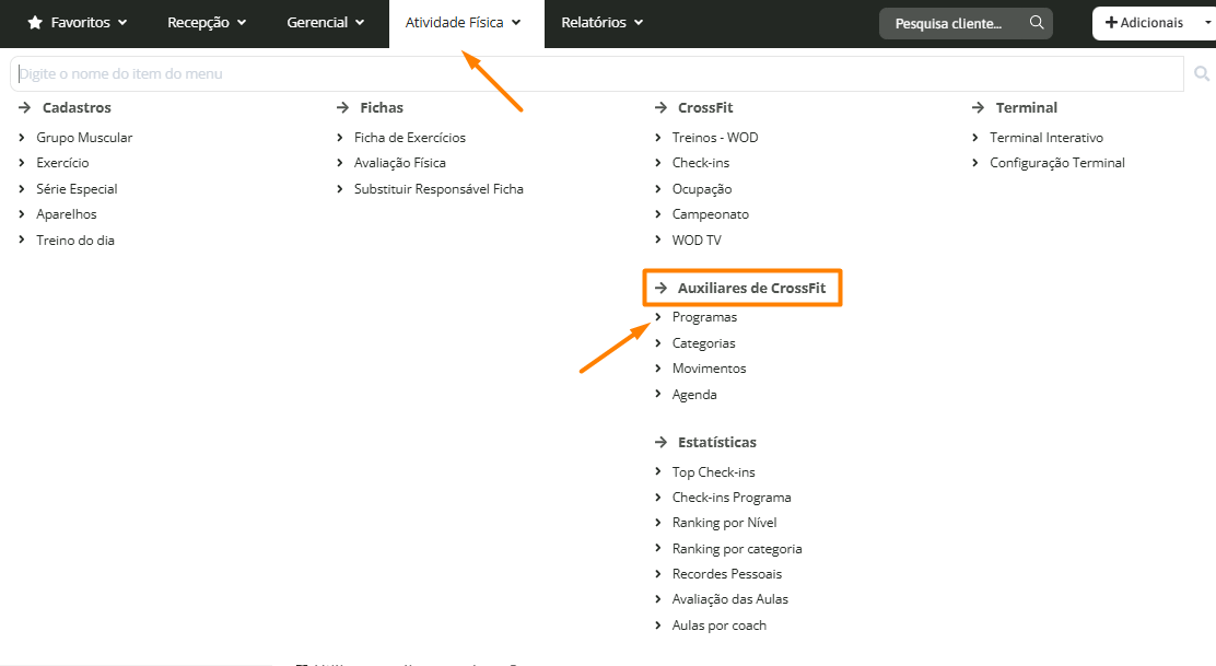1 - Acesse Atividade Física > Auxiliares de Crossfit > Programas: