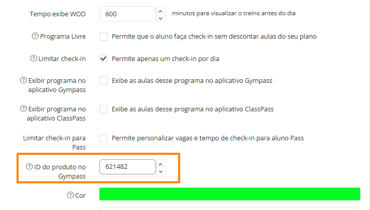 3 - Vincule o Product ID na opção "ID do produto no Gympass":