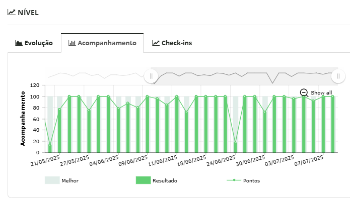 - Visualizar sua própria evolução e engajamento com mais clareza