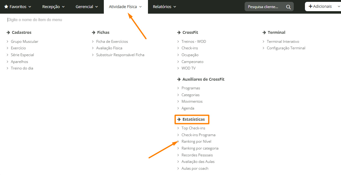 - Relatório de Ranking por Nível (Atividade Física > Estatísticas > Raking por nível):