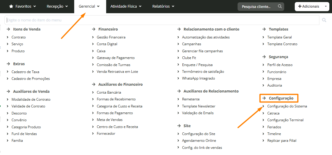 - Acesse Gerencial > Configuração > Configuração do Sistema: