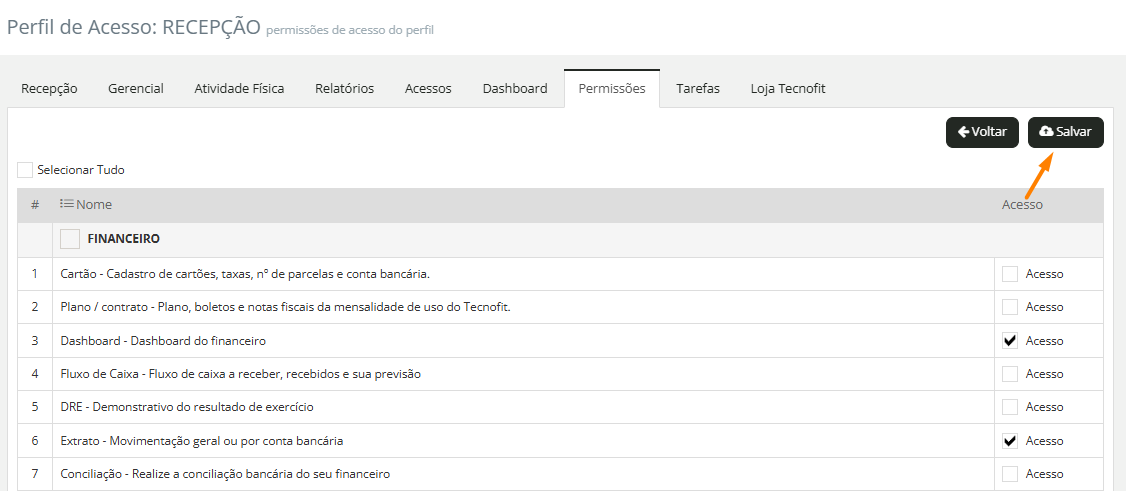 Na Tecnofit, você tem liberdade para criar perfis de acesso personalizados e definir exatamente o que cada colaborador pode visualizar ou fazer no sistema. Isso ajuda (e muito!) na organização da sua unidade e garante que cada funcionário tenha acesso apenas ao que realmente precisa.