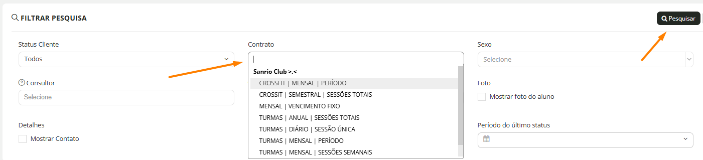 - Selecione o aluno, vá até a aba Contrato, clique no ícone de avião de papel e confirme o envio: