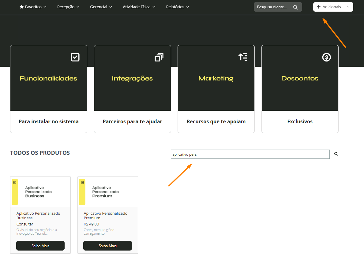 - Acesse "+ Adicionais" e pesquise por Aplicativo Personalizado: