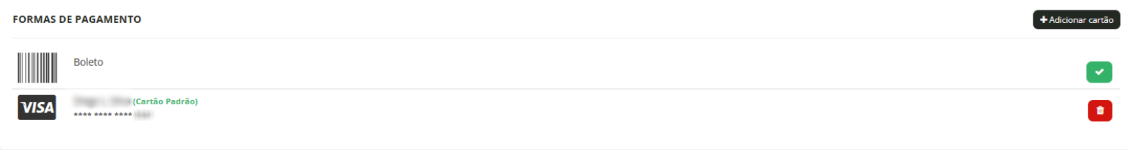 Prontinho! Se der tudo certo, o cartão aparecerá cadastrado.
