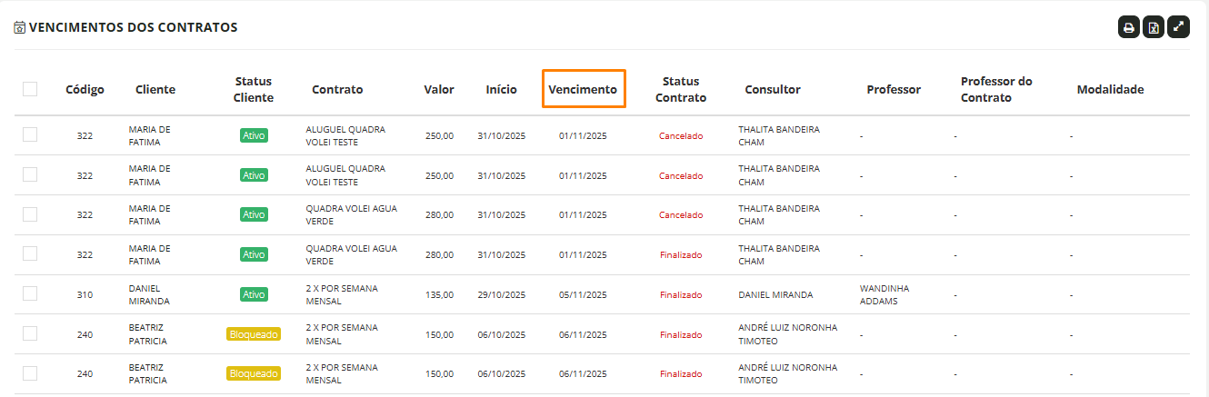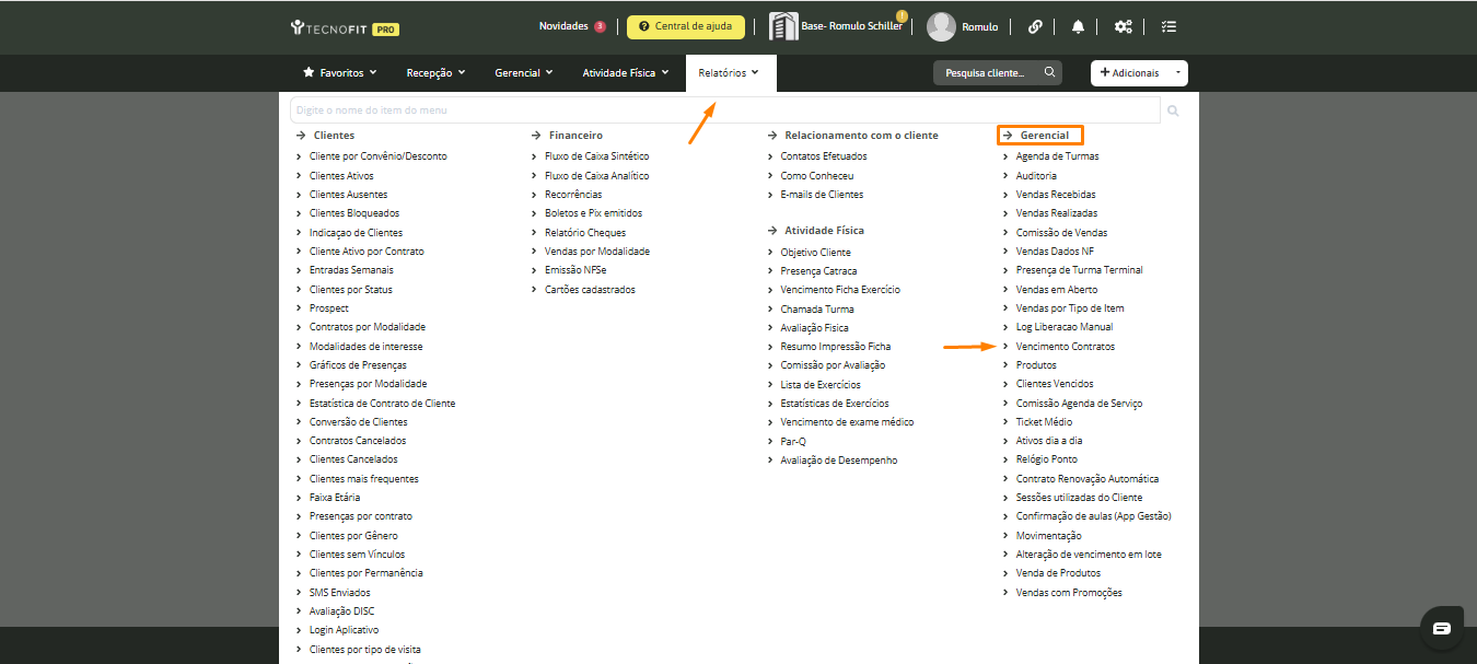 Acompanhar os vencimentos de contrato dos alunos é essencial para programar renovações, evitar desligamentos e criar estratégias de fidelização, como planos personalizados e promoções. No sistema, esse processo é simples e pode ser feito diretamente pelo módulo de relatórios.