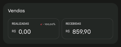 Aqui você tem acesso a um resumo das vendas realizadas e recebidas: