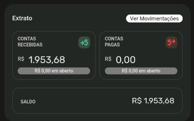 Ao clicar em "Ver movimentações", é possível visualizar o detalhamento de todas as contas a receber e a pagar lançadas no mês: