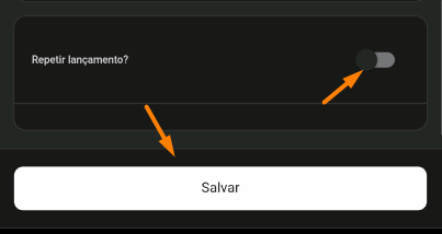 Além disso, você pode definir se essa conta se repetirá todo mês, ou pode clicar em "Salvar", caso seja um lançamento pontual: