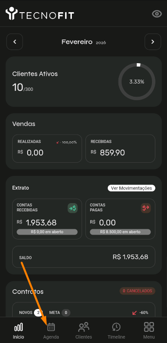 - No app Tecnofit Gestão 2.0, acesse a parte de Agenda: