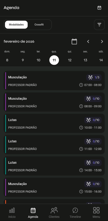 - Crossfit: Caso utilize a Agenda de Crossfit
