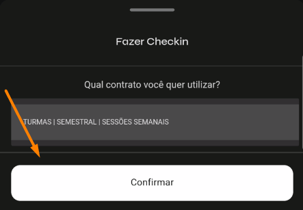 - Após selecionar o aluno, selecione o contrato e clique em "Confirmar":