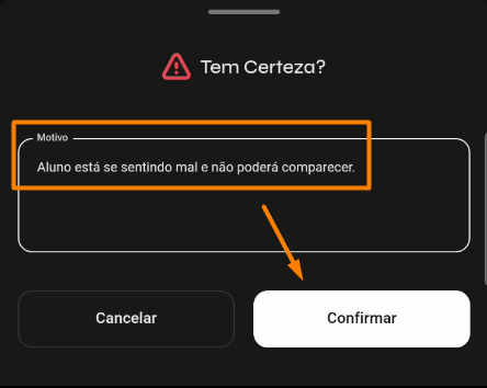 ⚠️ Atenção: Essa ação não poderá ser revertida. Ao registrar uma presença, você só conseguirá alterar essa presença para falta, e vice-versa. ⚠️
