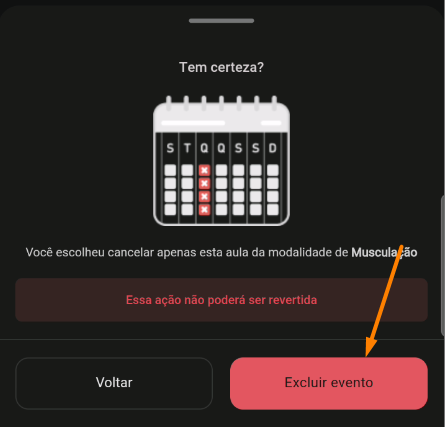 - Confirme mais uma vez a exclusão do evento: