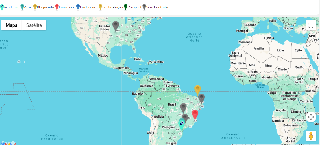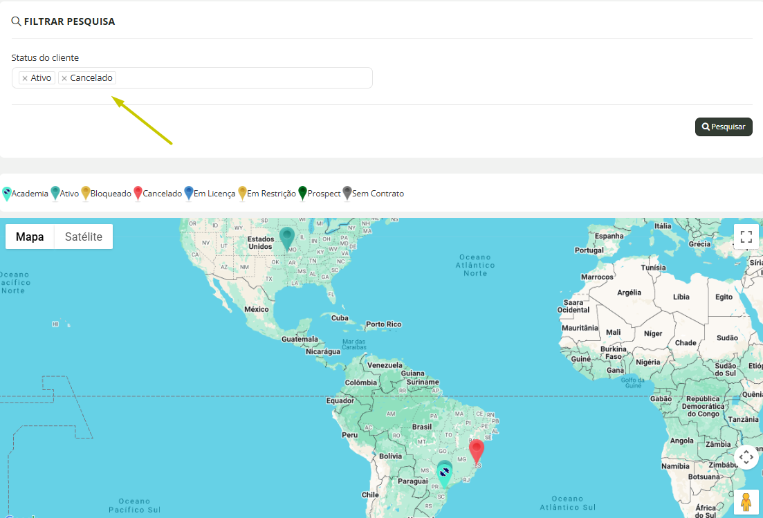 2. Filtros de Status: Pesquise no mapa apenas os alunos de acordo com seus status: