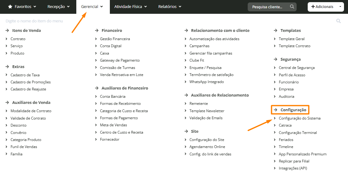 2. Acesse Gerencial > Configuração > Configuração do sistema:
