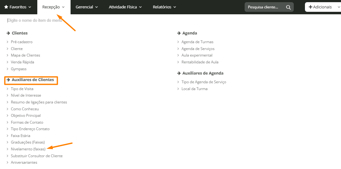 4. Após isso, o novo menu deverá aparecer em Recepção > Auxiliares de Clientes: