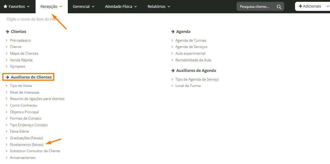1. Acesse Recepção > Auxiliares de clientes > Nivelamento (faixas):