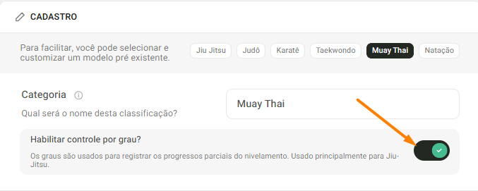 Aprenda como cadastrar categorias de nivelamento, como faixas ou níveis, no sistema. Essas categorias permitem organizar os alunos de acordo com a evolução dentro de cada modalidade.