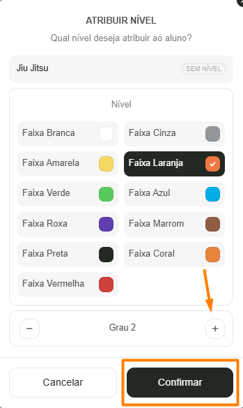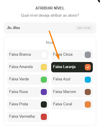 Aprenda como vincular um aluno a um nível ou faixa dentro do sistema. Esse processo permite acompanhar corretamente a evolução do aluno na modalidade.