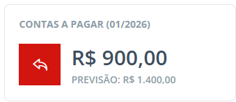No exemplo abaixo, a previsão total de pagamentos do período é de 1.400,00, e deste total previsto, já foi pago 900,00.