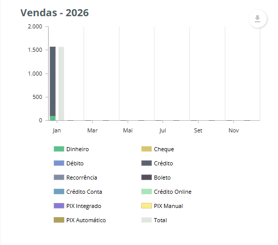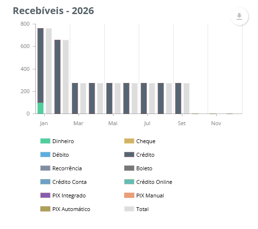 E na sequência, outro comparativo, mas desta vez entre "Vendas x Recebíveis" que ajuda a entender a projeção de recebimentos, em ambos é possível identificar as formas de pagamentos realizadas;
